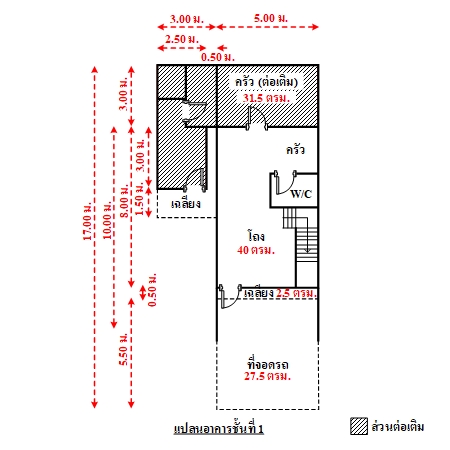 หน้ากว้างติดถนน : 8 เมตร ยาว(ลึก)สุด : 17 เมตร