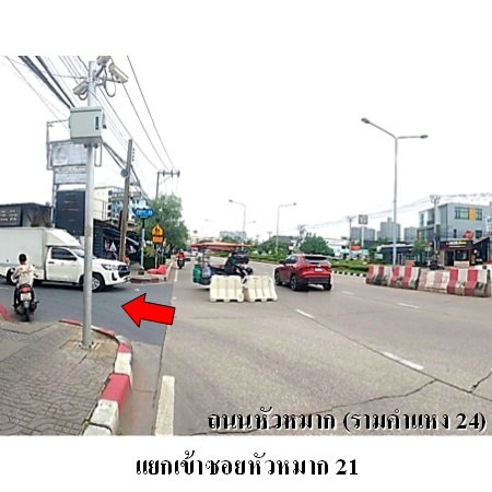 ถนนหัวหมาก จากลาดกระบังมุ่งหน้าถนนรามคำแหง ถึงแยกกรุงเทพกรีฑา ตรงไปประมาณ 1.06 กม. เลี้ยวซ้ายเข้าซอยหัวหมาก 21 ประมาณ 175 ม. จากนั้นเลี้ยวขวาเข้าหมู่บ้านไทม์โฮม หัวหมาก 21 และเลี้ยวซ้ายเข้าซอย 6 รวมประมาณ 155 ม. จะพบทรัพย์สินตั้งอยูด้านซ้ายมือ