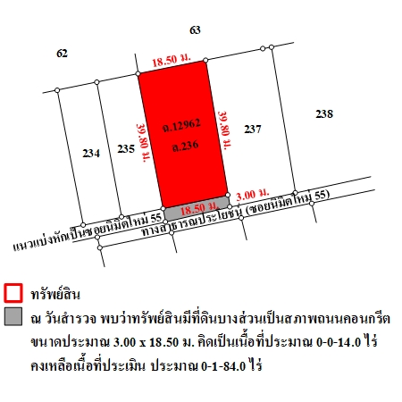 หน้ากว้างติดถนน : 18.5 เมตร ยาว(ลึก)สุด : 42.8 เมตร