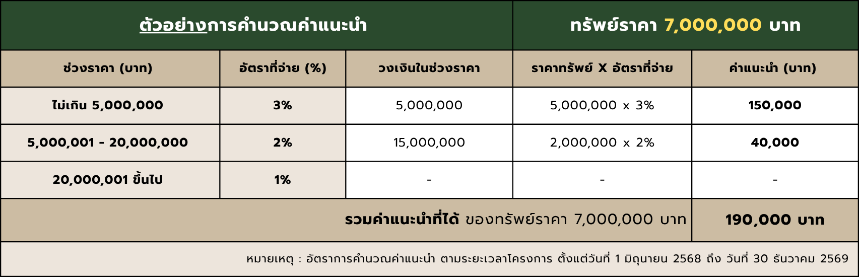 ขั้นที่ 1 ราคาขาย 0 – 5,000,000 บ. = จ่ายอัตรา 3%