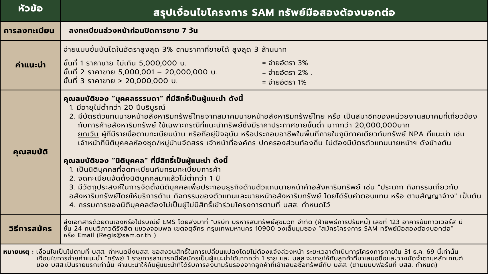 ลูกค้าสามารถตรวจสอบรายชื่อการเป็นผู้แนะนำขายทรัพย์ของ บสส. ผ่านทาง Call Center