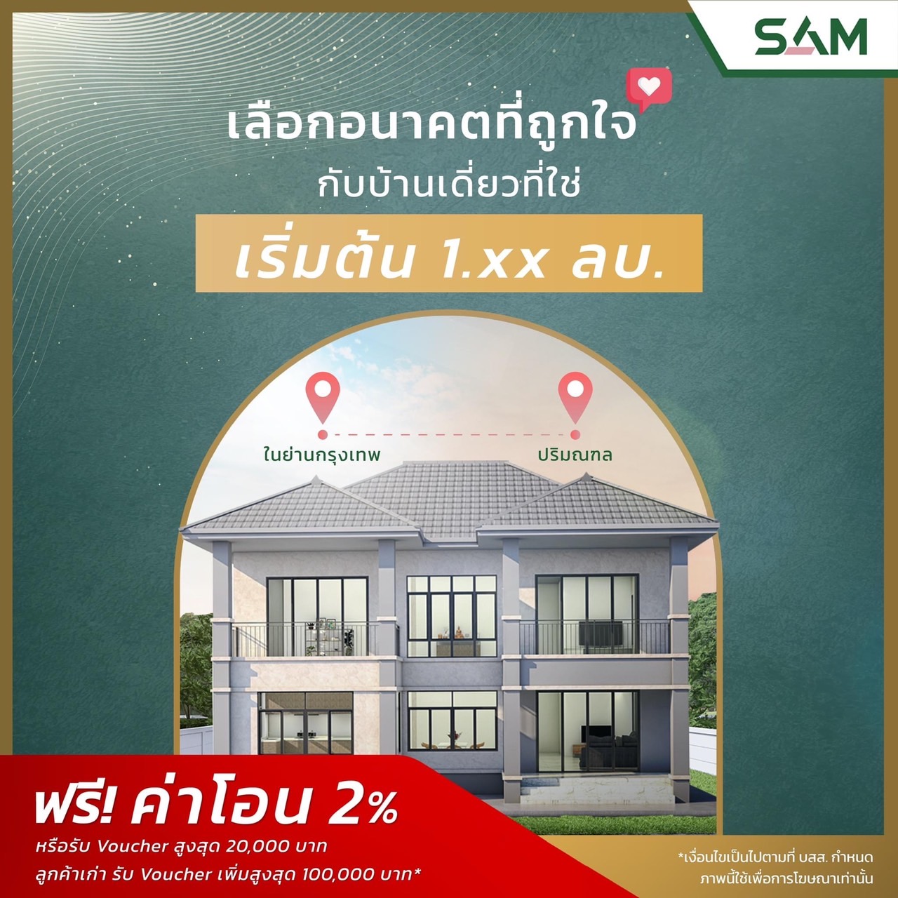 เพราะอนาคตที่สดใส คุณเลือกเองได้! วันนี้ SAM ได้รวบรวมบ้านเดี่ยวมือสองทั่วกรุงเทพและปริมณฑล* ราคาเริ่มต้นเพียง 1.xx ลบ. มาให้คุณแล้ว ไม่ว่าจะสร้างครอบครัว ลงทุน หรือเก็งกำไรก็คุ้มสุดคุ้ม
