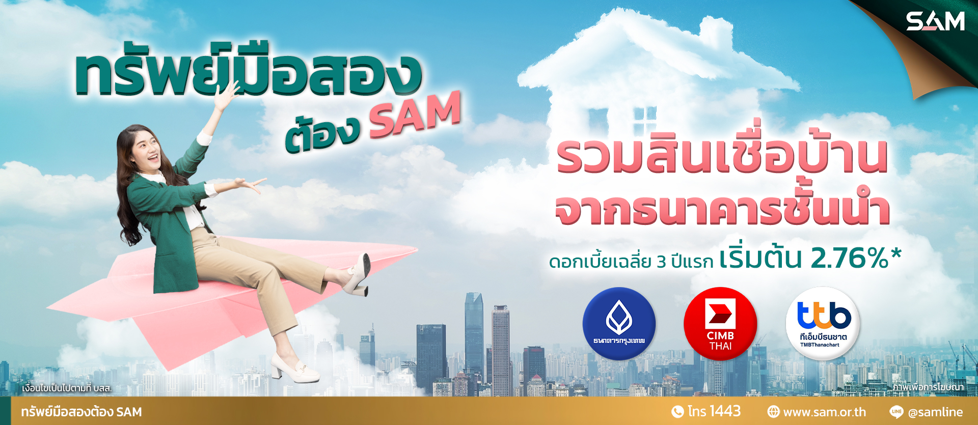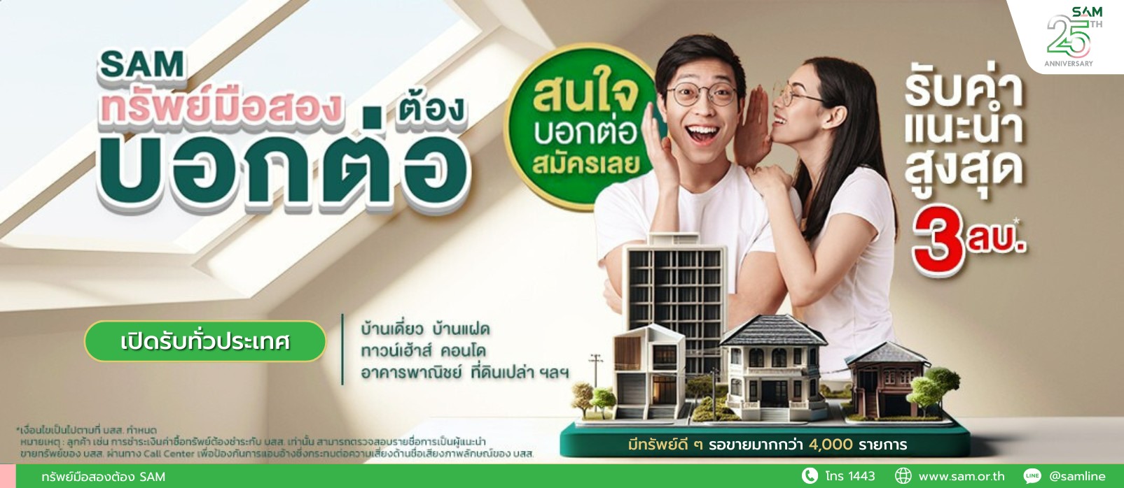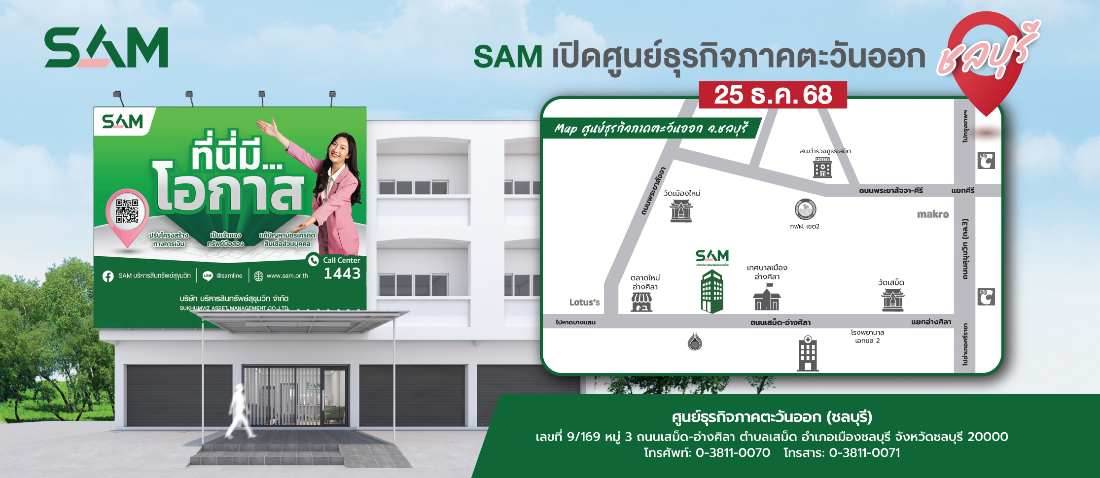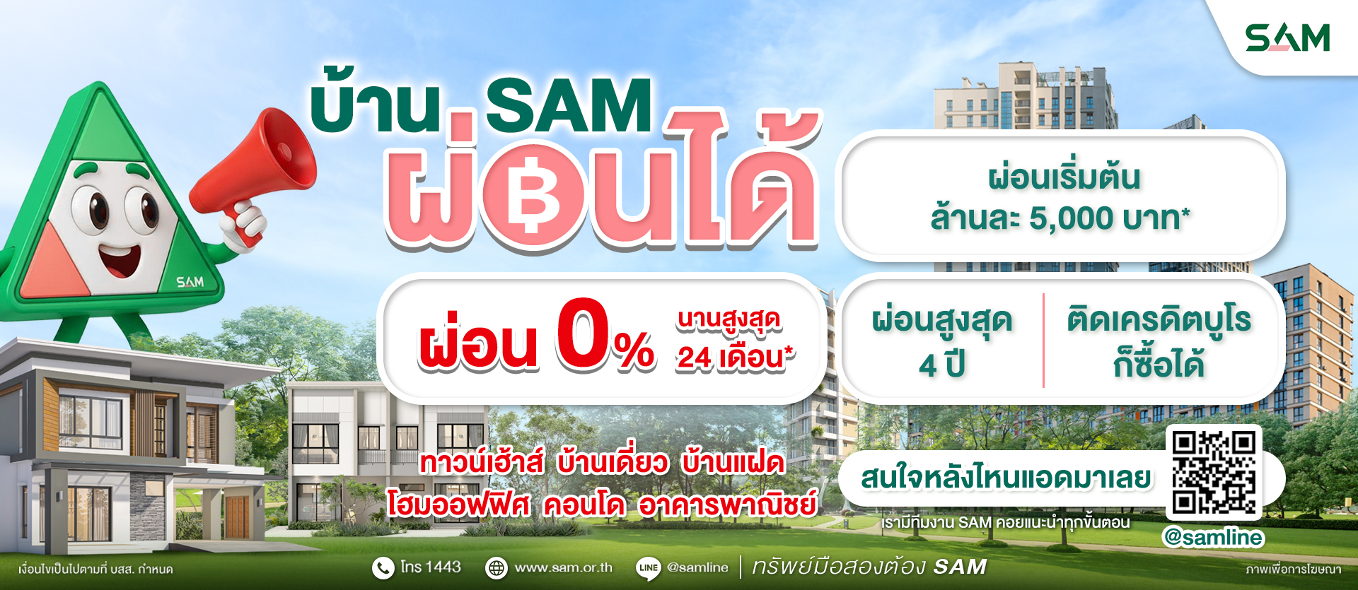 รายการทรัพย์ประมูล ครั้งที่ 4 / 69 รายการทรัพย์ประมูล ครั้งที่ 3 / 69 รายการทรัพย์ประมูล ครั้งที่ 2 / 69 แคมเปญ บ้าน SAM ผ่อนได้ เปิดศูนย์ธุรกิจภาคตะวันออก (ชลบุรี) SAM รวมสินเชื่อบ้านจากธนาคารชั้นนำ ITA ประจำปี 2567 1443 สายด่วน SAM SAM ทรัพย์มือสองต้องบอกต่อ
