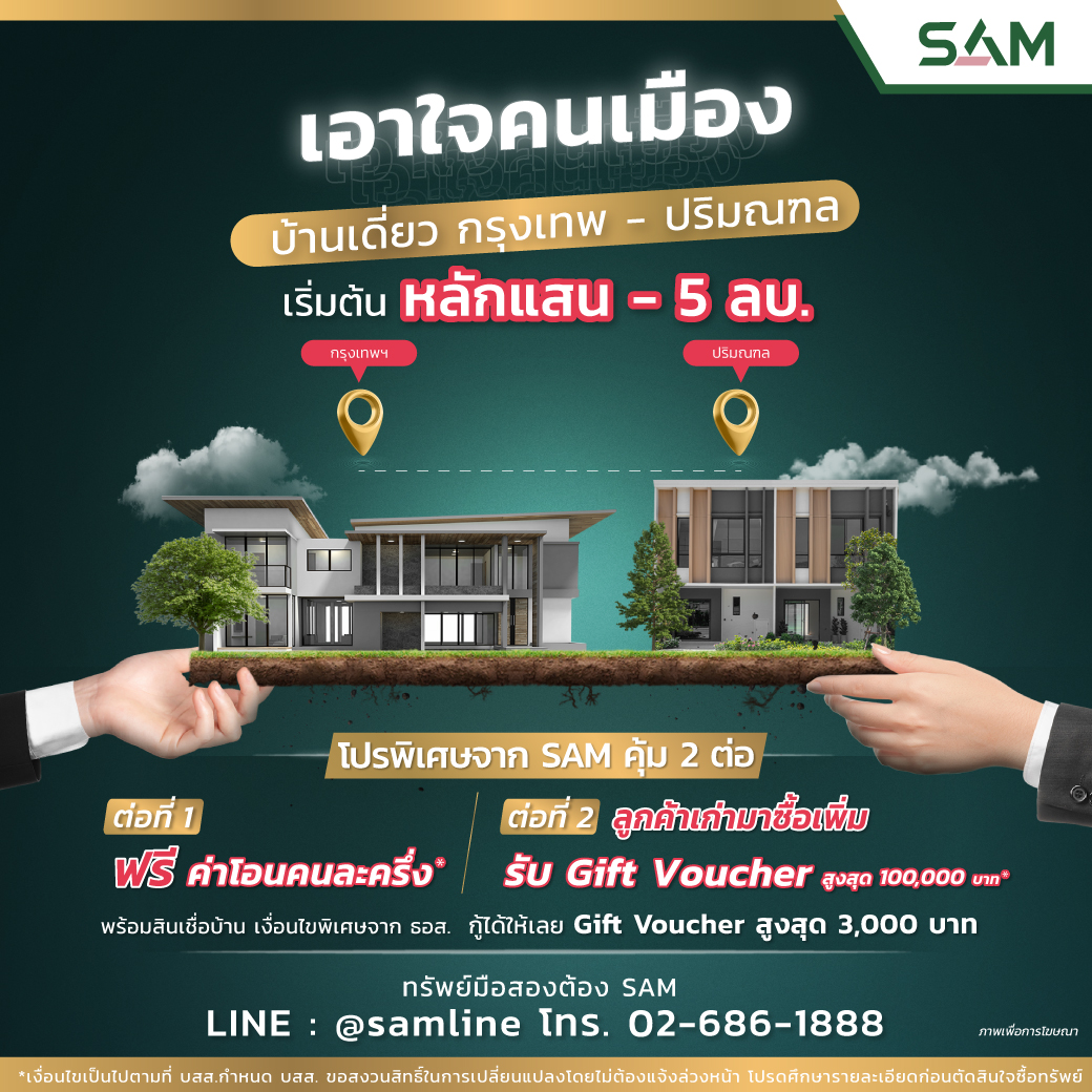 ✨อยากมีบ้านเดี่ยวกรุงเทพฯ-ปริมณฑล* SAM จัดให้ ราคาเริ่มต้นเพียงหลักแสน – 5 ลบ. พร้อมโปรฯ พิเศษ