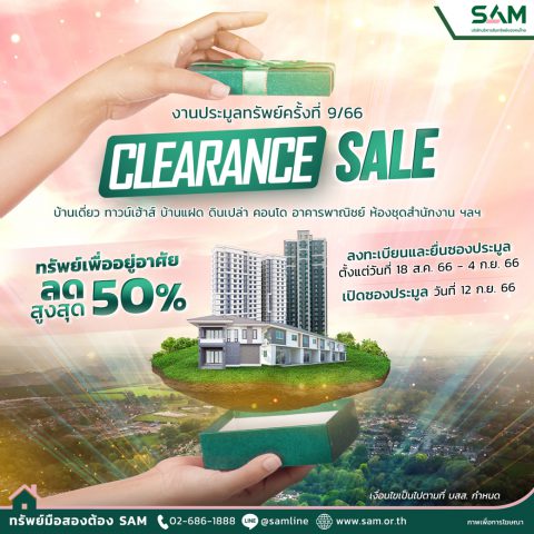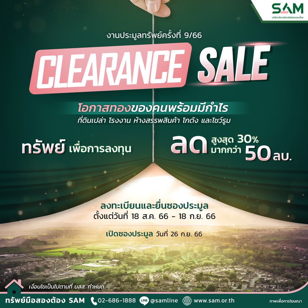 SAM ลดแหลกส่งท้ายปลายปี โล๊ะคลังทรัพย์มือสองกว่า 386 รายการ ทำเลดี ทั่วประเทศ หั่นราคามากกว่า 50% สูงสุดถึง 50 ล้านบาท !! ตั้งแต่ 18 สิงหาคม 2566 เป็นต้นไป