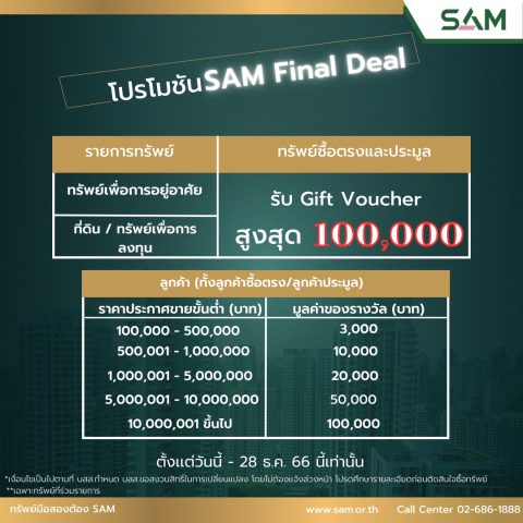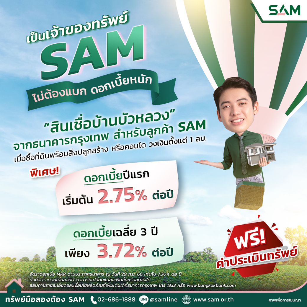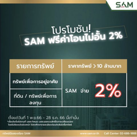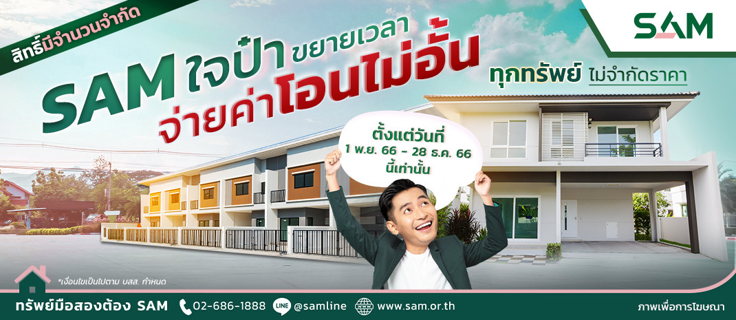 SAM จัดโปรฯ แรงพร้อมสิทธิประโยชน์ให้ลูกค้า จะซื้อทรัพย์เพื่ออยู่อาศัยหรือลงทุนก็ได้